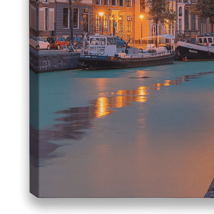 Ein Sommerabend auf der Hoge der A und Lage der A. Beides sind Straßennamen in der Stadt Groningen (Niederlande) auf beiden Seiten der A, eines Kanals zwischen Brugstraat und Vissersstraat.
