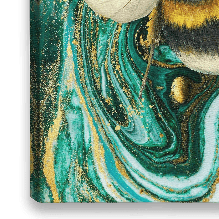 Wenn man sich dieses Design anschaut, scheint es, als würde die Hummel mit dem blauen smaragdgrünen Marmorhintergrund verschmelzen. Das Design ist einfach, aber kraftvoll, man schaut es einfach immer wieder an und sieht jedes Mal etwas anderes. Die Farben der Hummel und des Marmors sind so schön zusammen, als wären sie eins. Die Hummel…