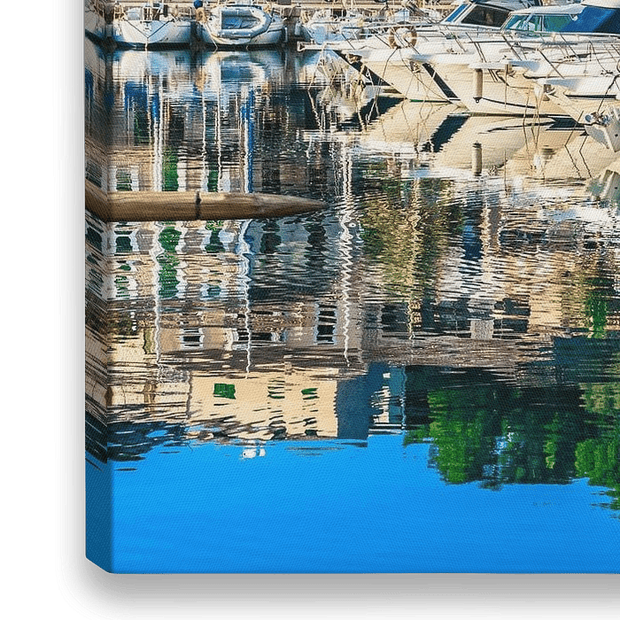 Bestelle das Foto Idyllische Hafenansicht von Puerto de Soller, Mallorca Spanien, Balearen von Alex Winter als Reproduktion auf Leinwand, Alu-Dibond, als Poster, Fototapete oder Acrylglasbild.