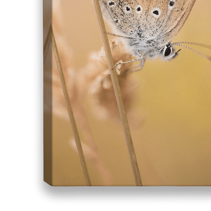 Dieser kleine Schmetterling sitzt am frühen Morgen ruhig im Gras. Mit einem Makroobjektiv fotografiert, erscheint dieser Ikarusblau größer als er tatsächlich ist.