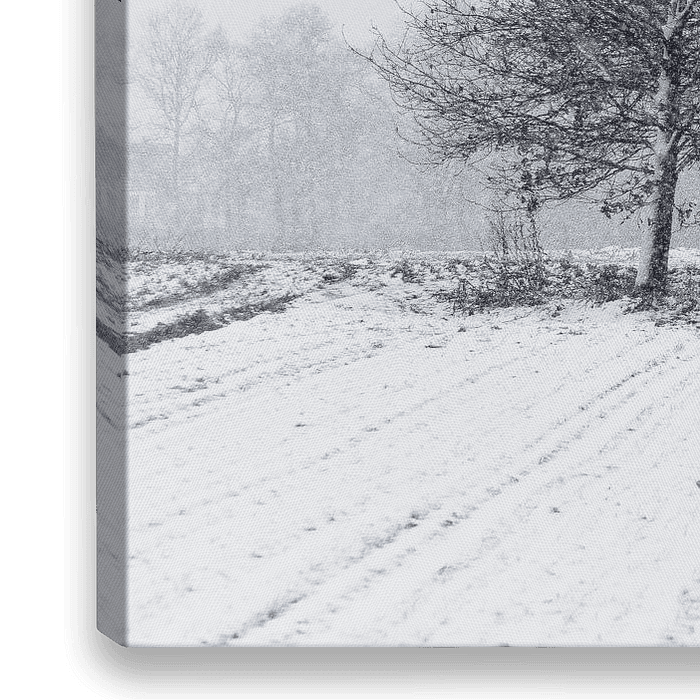 Reihenbäume auf einem Feld in Amerongen bei einem Wintersturm.
