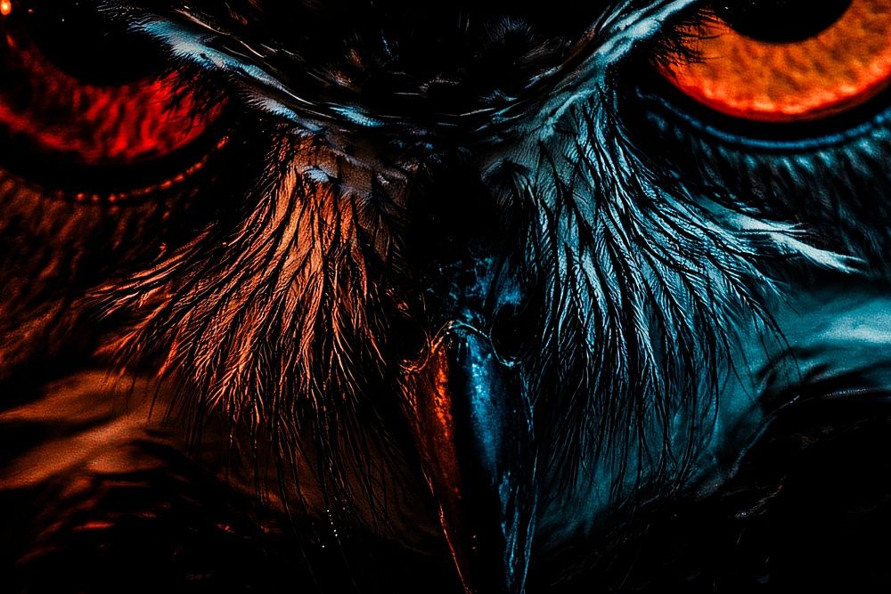Dieses beeindruckende Design zeigt eine Nahaufnahme einer Eule mit einem intensiven, hypnotischen Blick. Die warmen Orange- und Rottöne der Augen bilden einen schönen Kontrast zu den dunklen und reichen Strukturen des Gefieders. Perfekt für Liebhaber der Tierfotografie oder als künstlerischer Akzent in einem modernen Interieur. Dieses Design verleiht nicht nur jedem Raum Charakter, sondern strahlt auch ein Gefühl von Kraft und Geheimnis aus. Ideal für Schlafzimmer, Büros oder andere Räume, in denen ein auffälliges Kunstwerk gewünscht wird.