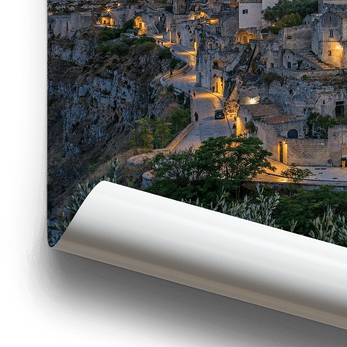 Bestelle das Foto Italien (Region Basilikata) - Matera bei Nacht von t.ART als Reproduktion auf Leinwand, Alu-Dibond, als Poster, Fototapete oder Acrylglasbild.