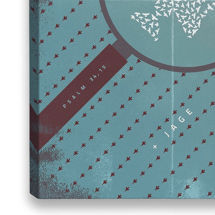 Bestelle dieses abstrakte Wandbild Jahreslosung 2019: Suche Frieden und jage ihm nach! Psalm 34,15 von Jonathan Schöps | UNDARSTELLBAR.DE — Visuelle Gedanken zu Gott als Reproduktion auf Leinwand, Alu-Dibond, als Poster, Fototapete oder Acrylglasbild.