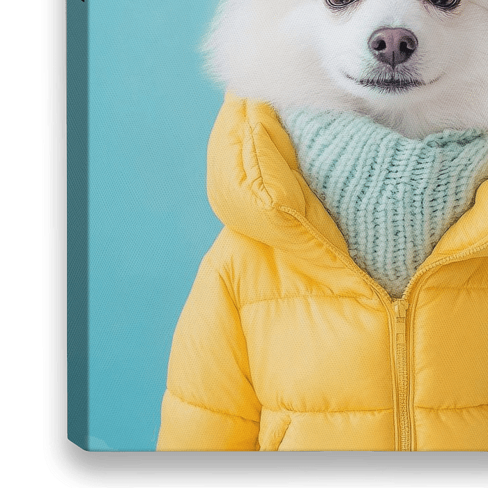 Ein strahlend weißer Japanischer Spitz, der die winterliche Kälte mit einem leuchtend gelben Mützchen und einer warmen Jacke trotzt. Sein freundlicher Blick strahlt Lebensfreude aus, während die flauschige Fellpracht und das verspielte Outfit ein unwiderstehliches Bild von Niedlichkeit und Charme erzeugen. Ein echter Fashionista der…