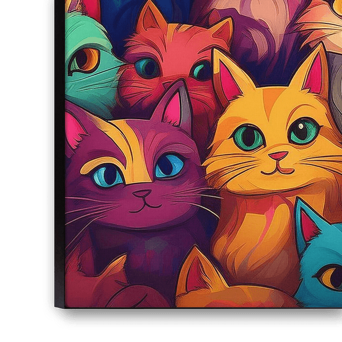 Reihen von verschiedenen Katzen in mehreren Farben.