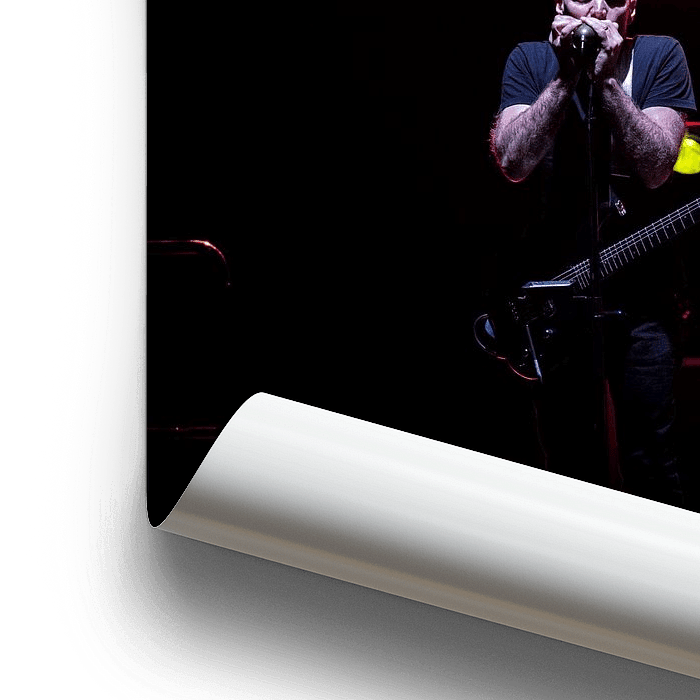 Joe Satriani in einem exklusiven Aufnahme, da er nie ohne Sonnenbrille auftritt. Dieses Bild wurde während einer Probe des Liedes Big Bad Moon vor einem Gig in Groningen aufgenommen.