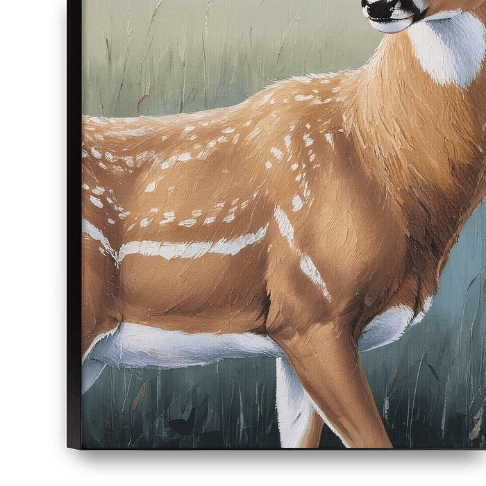 Dieses Gemälde zeigt einen majestätischen Hirsch mit beeindruckendem Geweih in einer natürlichen Umgebung. Die detaillierte Darstellung des Hirsches bringt die Schönheit der Natur direkt in Ihr Zuhause. Mit seinem ruhigen Look und den naturgetreuen Details ist dieses Kunstwerk die perfekte Wahl für Tier- und Naturliebhaber. Die sanften…