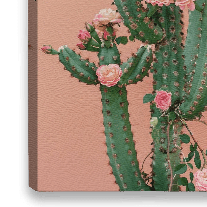 Bestelle dieses Blumen-Wandbild Kaktus mit blühenden Rosen von Poster Art Shop als Reproduktion auf Leinwand, Alu-Dibond, als Poster, Fototapete oder Acrylglasbild.