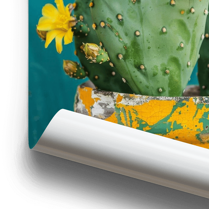 Kaktusblüten in buntem Topf von Poster Art Shop