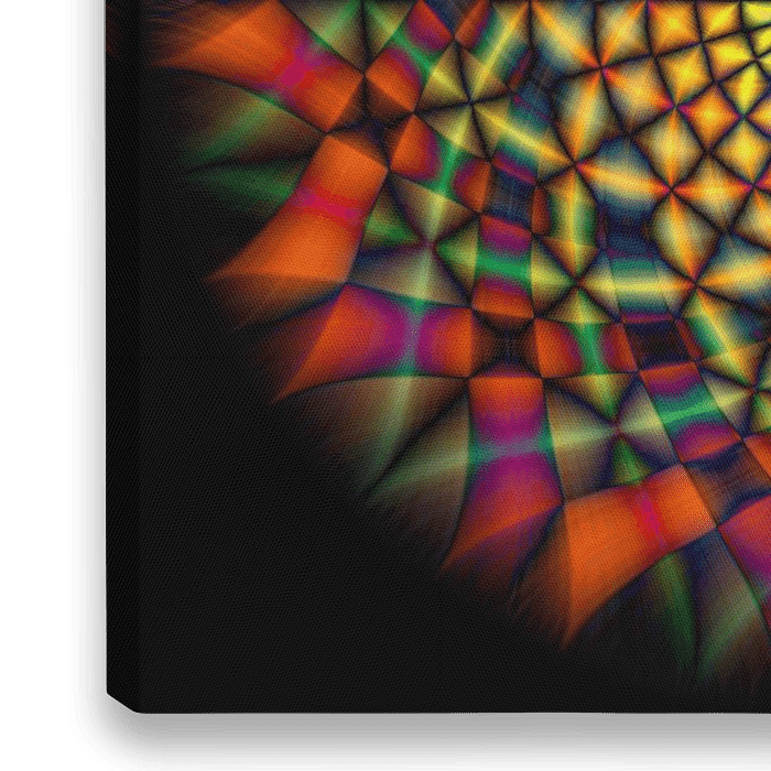 Ein farbenfrohes digitales Kunstwerk auf der Grundlage eines handgezeichneten Mandalas.