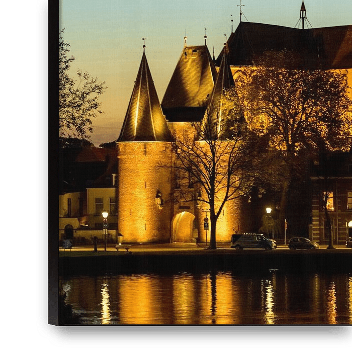 Bestelle das Foto Kampen Bovenkerk und Koornmarktspoort in der Skyline von Kampen von Sjoerd van der Wal Fotografie als Reproduktion auf Leinwand, Alu-Dibond, als Poster, Fototapete oder Acrylglasbild.