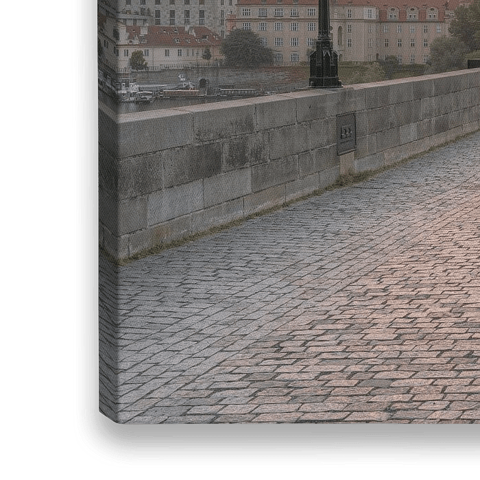 Blick von der Karlsbrücke in Richtung Prager Altstadt bei Sonnenaufgang.