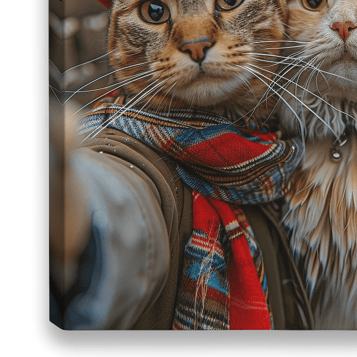 Das Kunstwerk "Fellnasen-Touristen: Katzen-Selfie an der Großen Mauer" ist ein außergewöhnliches Stück, das Humor mit Kultur verbindet. Hier posieren zwei abenteuerlustige Katzen im traditionellen asiatischen Stil, mit charakteristischen Hüten, und nehmen den Betrachter mit auf ihre Reise entlang der historischen Großen Mauer. Ihre…