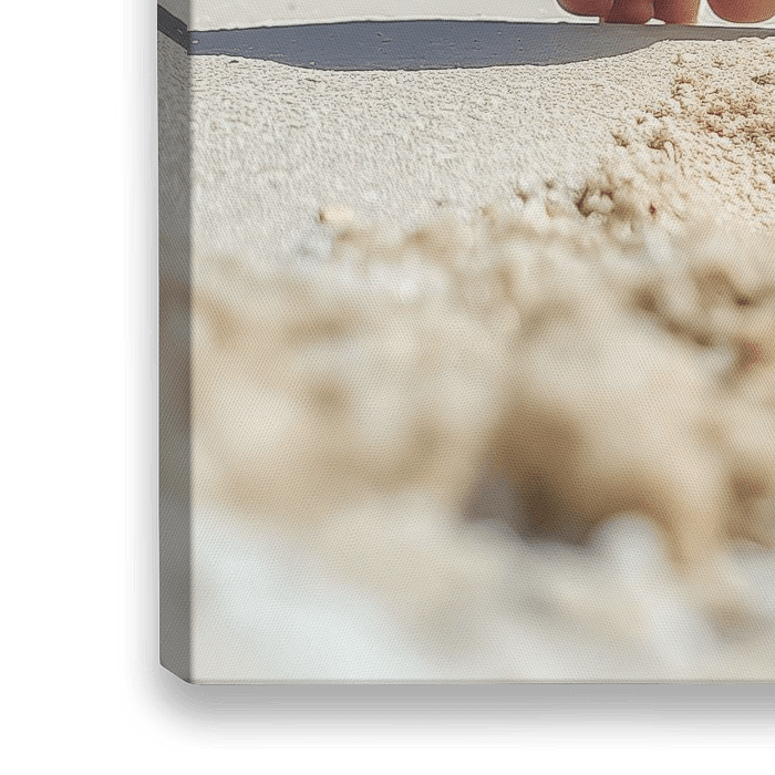 Nahaufnahme von Kinderfüßen, die am Strand laufen.