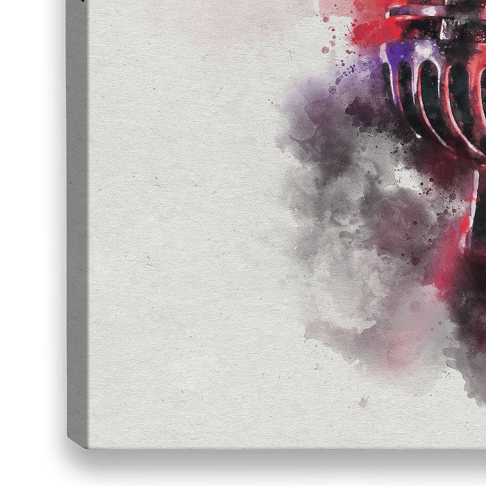 Bestelle dieses abstrakte Wandbild Klassische Vintage Chrom Mikrofon in bunten Aquarell von Andreea Eva Herczegh als Reproduktion auf Leinwand, Alu-Dibond, als Poster, Fototapete oder Acrylglasbild.