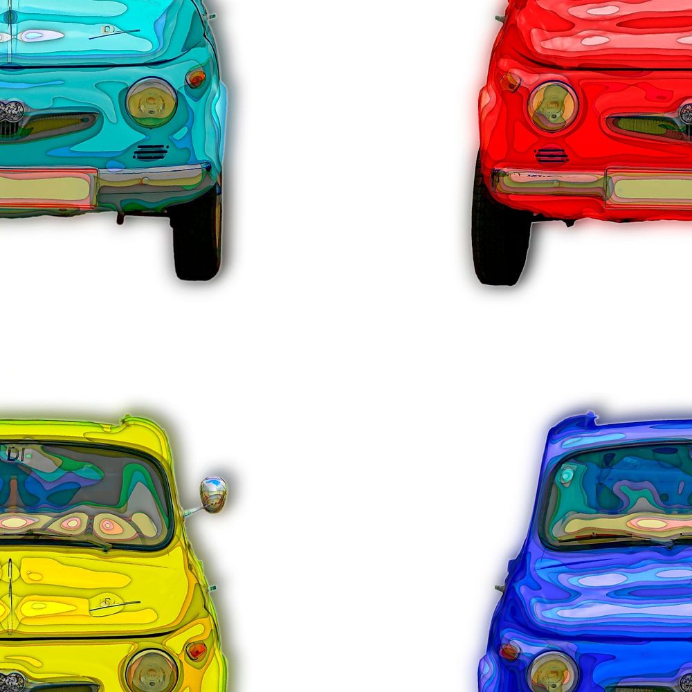 Österreichische Oldtimer Kleinwagen aus den fünziger und sechziger Jahren des zwanzigsten Jahrhunderts in verschiedenen Farben