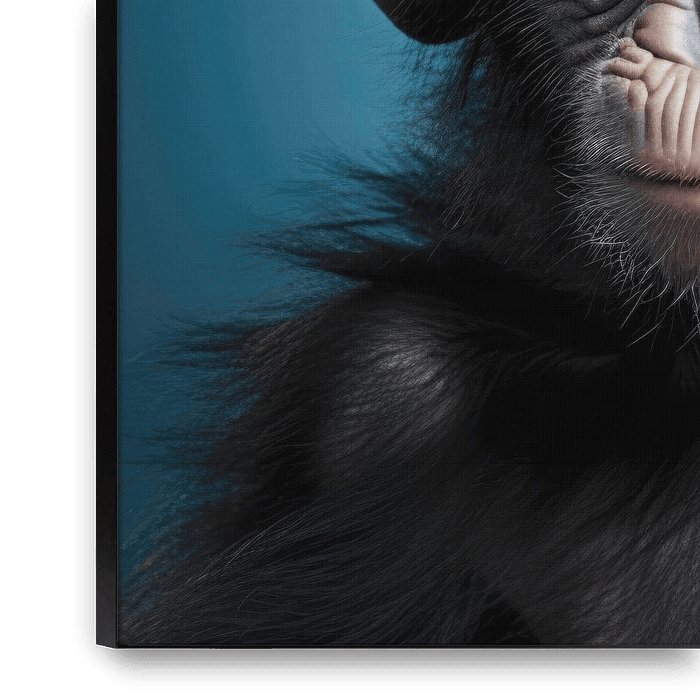 Ein Schimpanse im Stil einer Portraitfotografie.