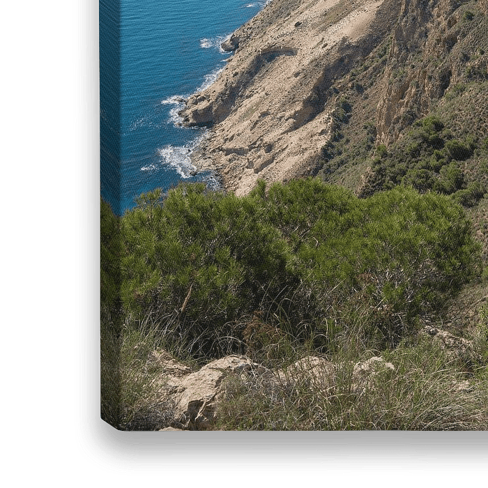 Bestelle das Foto Klippen, Kiefern und das blaue Mittelmeer von Adriana Mueller als Reproduktion auf Leinwand, Alu-Dibond, als Poster, Fototapete oder Acrylglasbild.