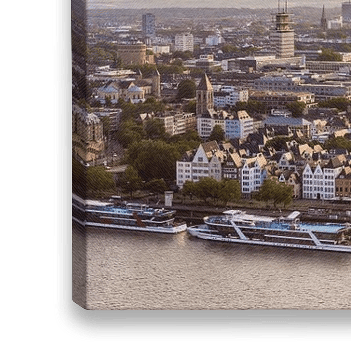 Kölns Skyline mit dem Kölner Dom, dem Rhein und der Hohenzollernbrücke an einem schönen Sommerabend.