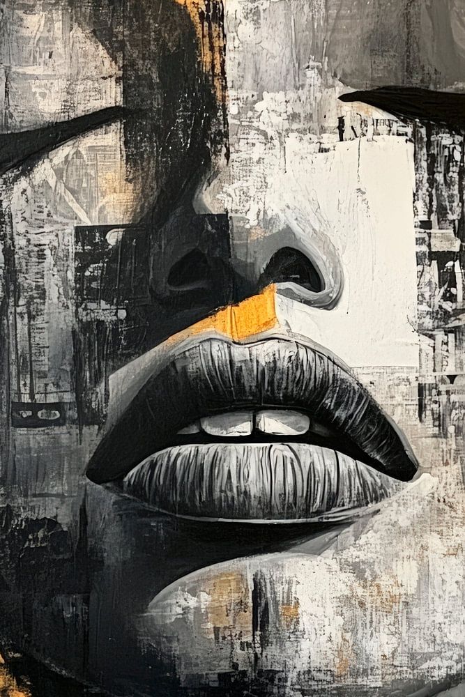 Ein fesselndes Porträt, das mit faszinierenden Grautönen und lebhaftem Gelb spielt, zieht den Betrachter in seinen Bann. Die geschlossenen Augen und der ausdruckstarke Gesichtsausdruck vermitteln Ruhe und Stärke. Dieses Kunstwerk eignet sich perfekt für ein Wohnzimmer, wo es ein Gefühl von Stil und Eleganz vermittelt.
