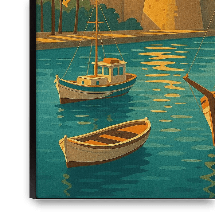 Kos Art Deco Poster - Hafenboote und Burgmauern