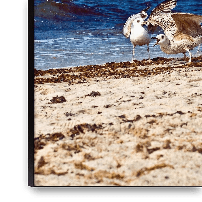 Bestelle dieses Landschafts-Wandbild Kreischende Möwen im Ostseebad Warnemünde von Silva Wischeropp als Reproduktion auf Leinwand, Alu-Dibond, als Poster, Fototapete oder Acrylglasbild.