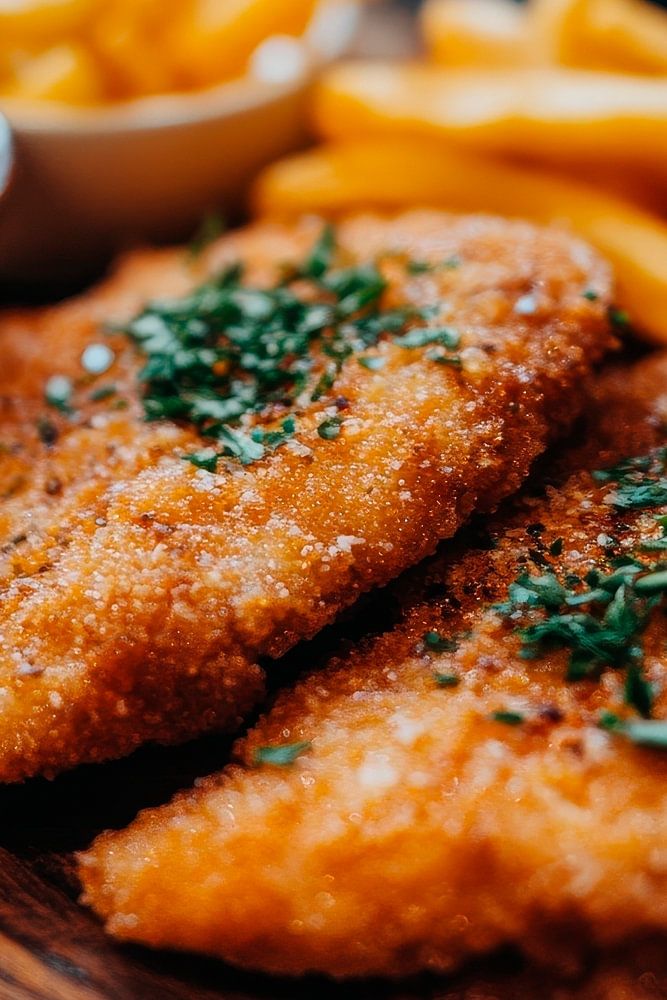 Ein verlockendes Gericht, das die appetitanregende Kombination aus knusprigem Fisch und goldenen Pommes präsentiert. Die frische Kräuternote darauf verleiht dem Teller eine besondere Eleganz. Perfekt für die Küche oder das Esszimmer, wo es Genuss und Geselligkeit fördert – ein wahrer Blickfang, der zum gemeinsamen Schlemmen einlädt.