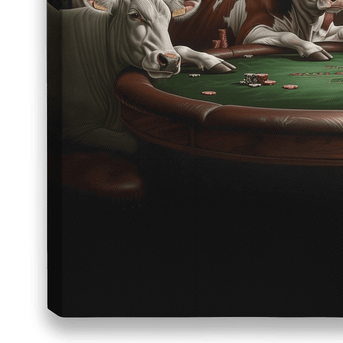 Bestelle dieses Kuh-Wandbild Kühe pokern von TheXclusive Art als Reproduktion auf Leinwand, Alu-Dibond, als Poster, Fototapete oder Acrylglasbild.