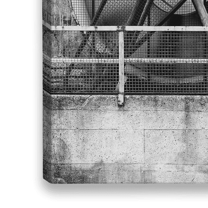 Zwei rotierende Ventilatoren an der Rückseite des Kühlsystems der ehemaligen ThyssenKrupp Hochöfen und nun des Landschaftsparks in Duisburg. Schwarz-Weiß-Version. Dieses Bild wurde im März 2019 aufgenommen.