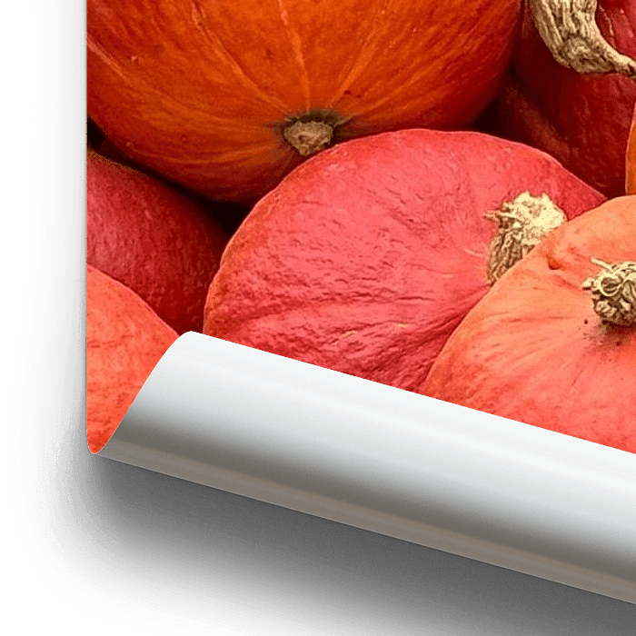 Dieses eindrucksvolle Poster zeigt eine Nahaufnahme von leuchtend orangefarbenen Hokkaido-Kürbissen – ein Motiv, das sofort herbstliche Wärme, Gemütlichkeit und natürliche Fülle vermittelt. Die organischen Formen, die leicht rustikale Schalenstruktur und die intensiven Rottöne der Kürbisse wirken nicht nur authentisch, sondern auch…