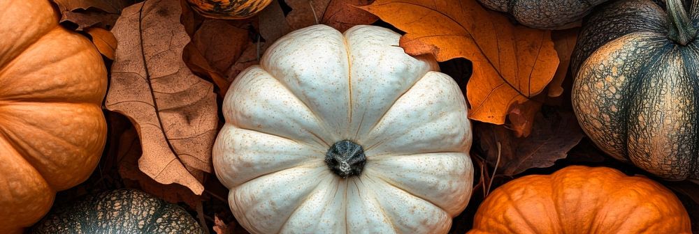 In einem bunten Herbstparadies entfalten sich verschiedene Kürbisse – von leuchtendem Orange über sanftes Grau bis hin zu strahlendem Weiß. Umrahmt von leuchtend braunen Blättern erzählen sie von Erntefreuden und kuscheligen Abenden. Die Vielfalt der Formen und Farben lädt dazu ein, die Magie der Saison zu genießen und kreativ zu werden.