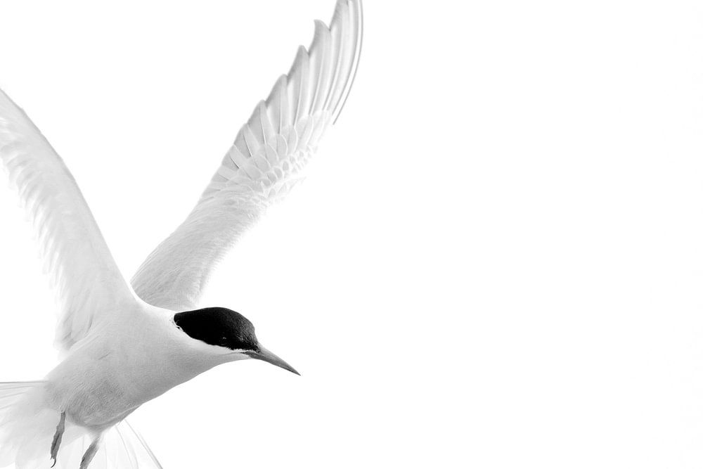Küstenseeschwalbe im Flug (schwarz-weiß)