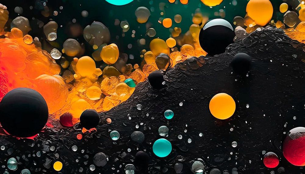 Kugel mit Luftblasen und Farben in Kunst wie Design