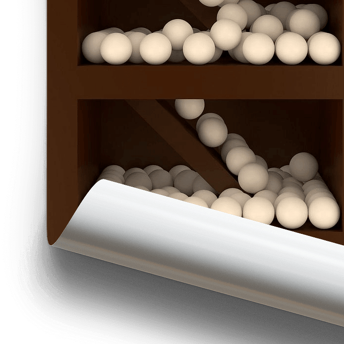 Kugeln rutschen in einem Kasten nach unten.