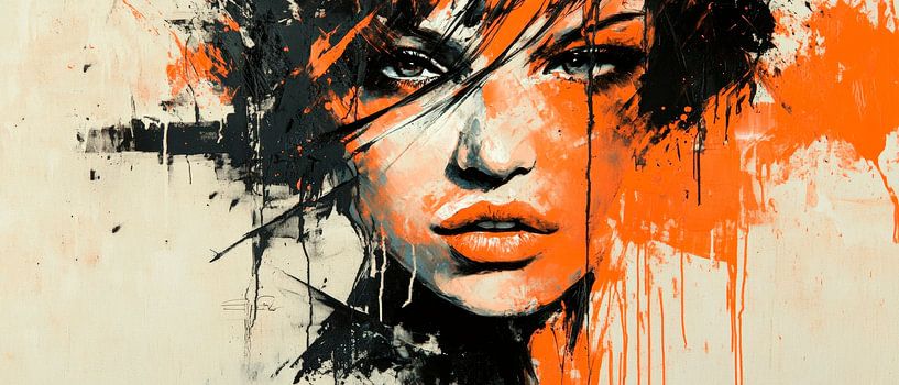 Ein kraftvolles Porträt, das mit intensiven Pinselstrichen und erdigen Farben spielt. Die Kombination aus tiefen, geheimnisvollen Augen und lebhaften Orangetönen verleiht dem Raum eine aufregende Dynamik. Perfekt für ein Wohnzimmer, wo es als Gesprächsanlass dient und den kreativen Geist anregt.