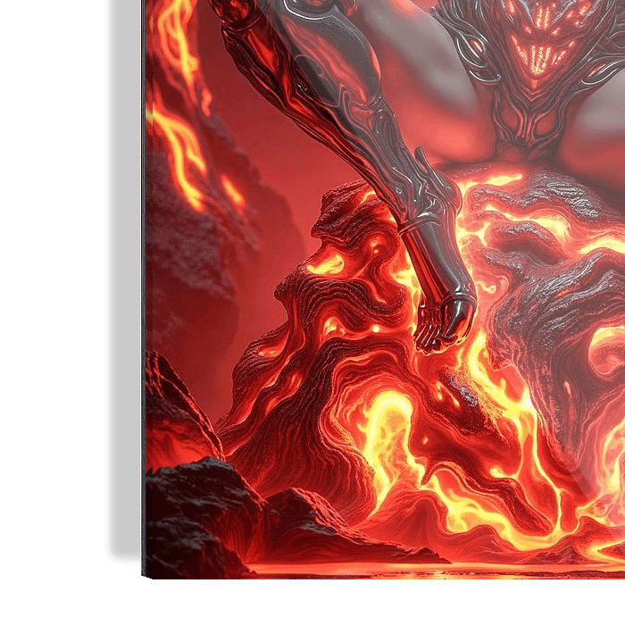 Hyperrealistische Schärfe in jeder Struktur: das Glühen des Metalls, die Bewegung der Flammen, der Schimmer ihrer Haut im Licht der Lava. Modernste High-End-Technologie erweckt die Szene zu einer filmischen Explosion aus Dynamik und Präzision – ein Bild, das brennt, lebt und atmet.