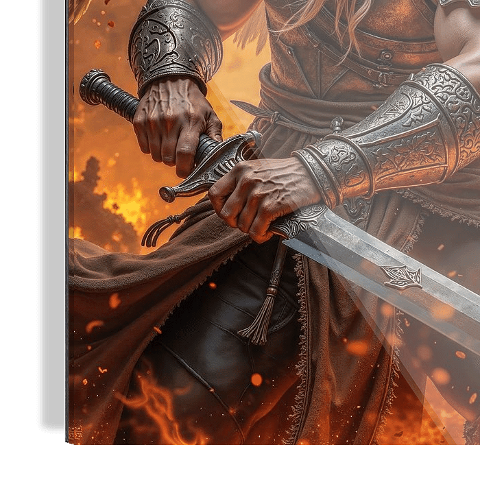 Im Sturm aus Feuer und Licht steht er – der Erzengel der letzten Schlacht. Sein Blick ist unbeirrbar, sein Schwert glüht in himmlischer Glut, und seine Flügel breiten sich aus wie das Tor zwischen Himmel und Hölle. Die Luft zittert unter seiner Präsenz, und die Flammen um ihn lodern wie ein göttlicher Herzschlag. Wo er steht, weicht die…