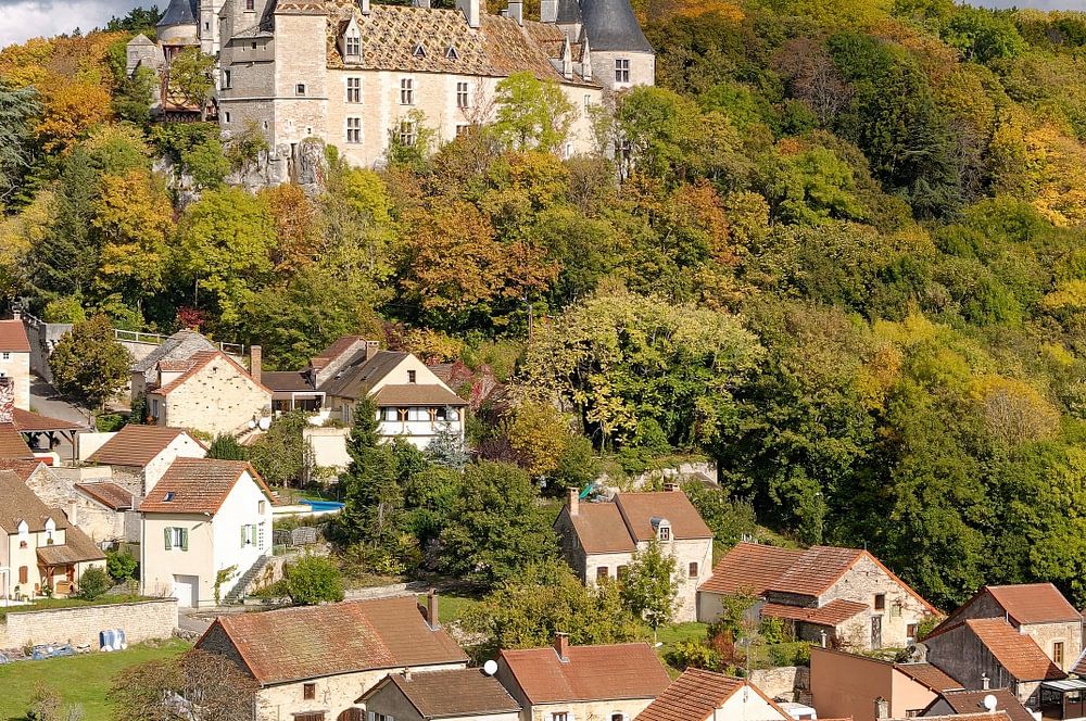 der Ort mit Schloß La Rochepot in Burgund,Frankreich