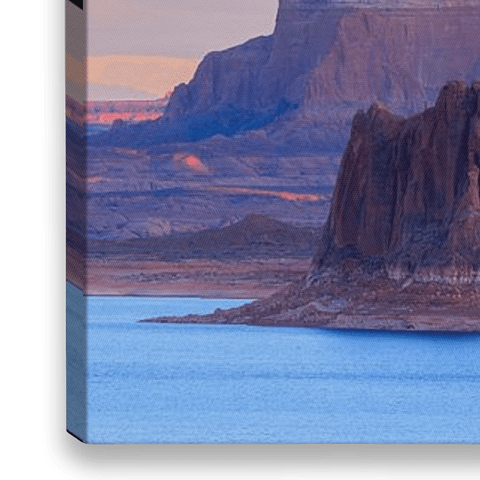 Blick über die Padre Bay bei Sonnenaufgang vom Cookie Jar Butte am Lake Powell, an der Grenze zwischen Utah und Arizona, USA.