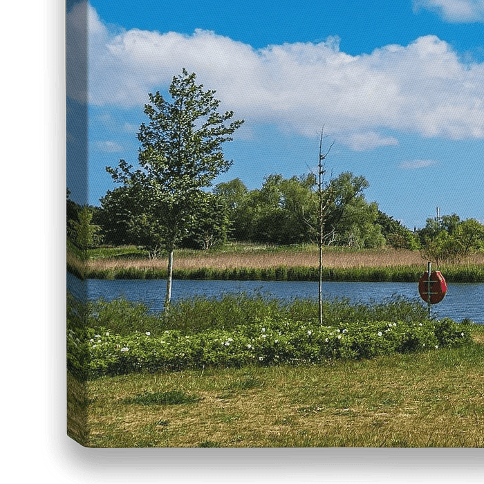 Bestelle das Foto Landschaft am Fluss Warnow mit Riesenpose in der Hansestadt Rostock von Rico Ködder als Reproduktion auf Leinwand, Alu-Dibond, als Poster, Fototapete oder Acrylglasbild.