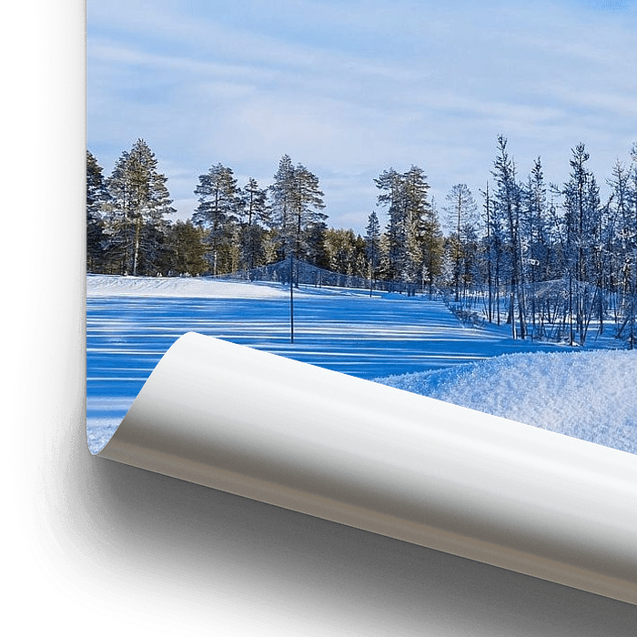 Bestelle dieses Landschafts-Wandbild Landschaft mit Schnee im Winter in Kuusamo, Finnland von Rico Ködder als Reproduktion auf Leinwand, Alu-Dibond, als Poster, Fototapete oder Acrylglasbild.