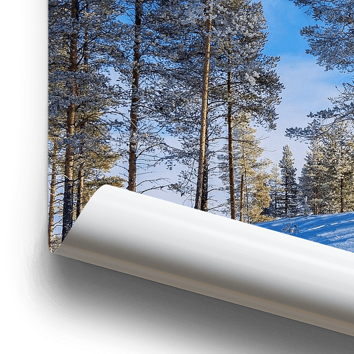 Bestelle dieses Landschafts-Wandbild Landschaft mit Schnee im Winter in Kuusamo, Finnland von Rico Ködder als Reproduktion auf Leinwand, Alu-Dibond, als Poster, Fototapete oder Acrylglasbild.
