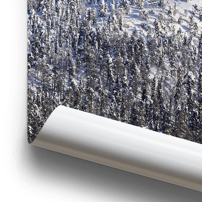 Bestelle dieses Landschafts-Wandbild Landschaft mit Schnee im Winter in Ruka, Finnland von Rico Ködder als Reproduktion auf Leinwand, Alu-Dibond, als Poster, Fototapete oder Acrylglasbild.