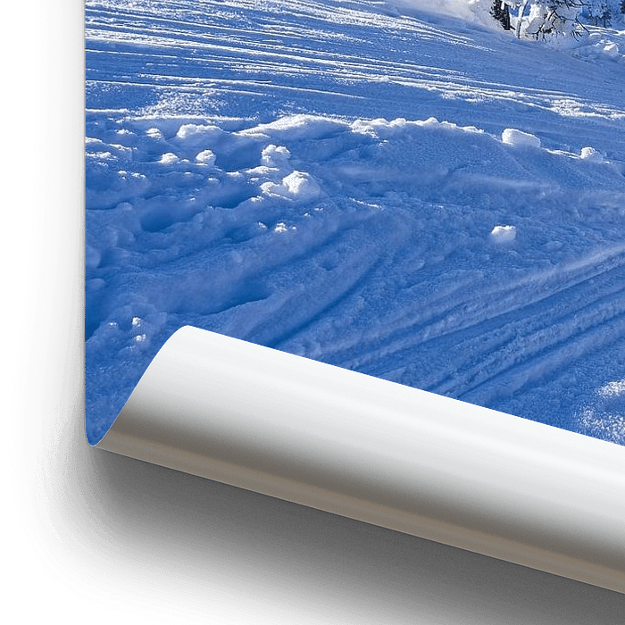Bestelle dieses Landschafts-Wandbild Landschaft mit Schnee im Winter in Ruka, Finnland von Rico Ködder als Reproduktion auf Leinwand, Alu-Dibond, als Poster, Fototapete oder Acrylglasbild.
