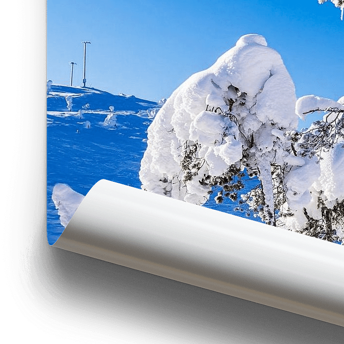 Bestelle dieses Landschafts-Wandbild Landschaft mit Schnee im Winter in Ruka, Finnland von Rico Ködder als Reproduktion auf Leinwand, Alu-Dibond, als Poster, Fototapete oder Acrylglasbild.
