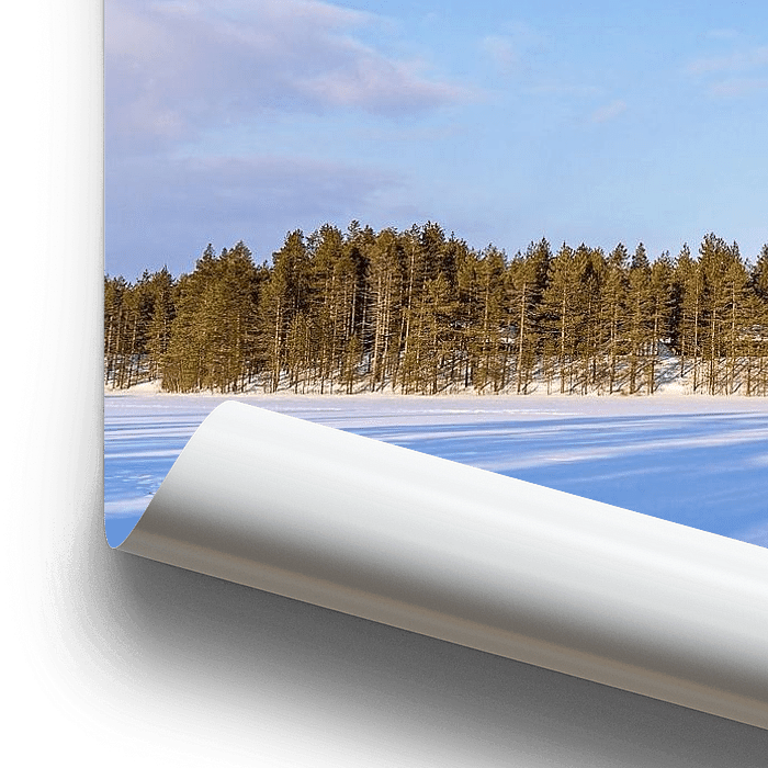 Bestelle dieses Landschafts-Wandbild Landschaft mit Schnee und See im Winter in Kuusamo, Finnland von Rico Ködder als Reproduktion auf Leinwand, Alu-Dibond, als Poster, Fototapete oder Acrylglasbild.