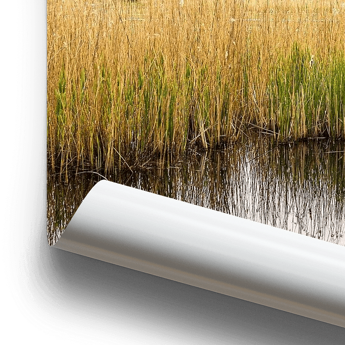 Bestelle dieses Landschafts-Wandbild Landschaft mit Teich, Schilf und Bäumen bei Kuchelmiß von Rico Ködder als Reproduktion auf Leinwand, Alu-Dibond, als Poster, Fototapete oder Acrylglasbild.