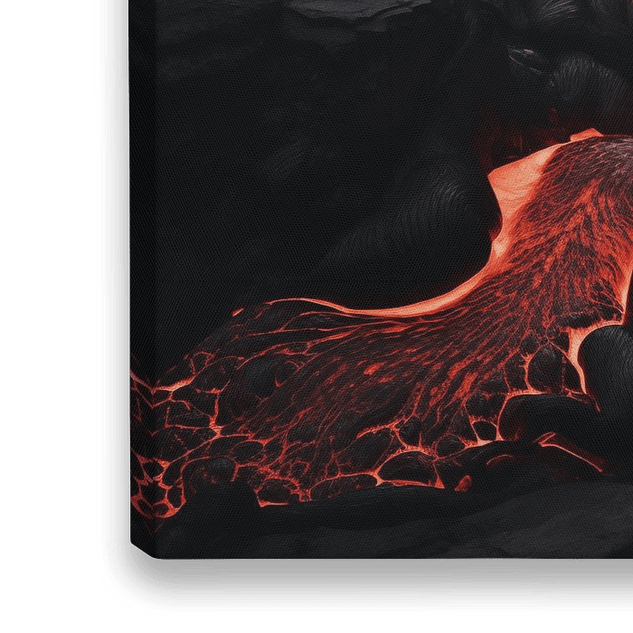 Die Kombination aus fließender Bewegung und scharfen Details macht dieses Gemälde zu einem echten Blickfang. Das Glühen des Feuers scheint sich über die Leinwand auszubreiten und fängt die natürliche Dynamik einer Vulkanlandschaft eindrucksvoll ein. Dieses Werk strahlt pure Energie aus und symbolisiert Kraft, Transformation und die Schönheit, die in den rohen Elementen unserer Erde liegt.