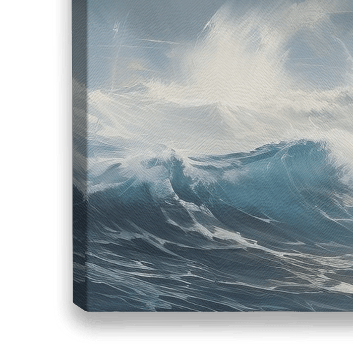 Lebendige Meereslandschaft - Die Leinwand zeigt eine lebendige Meereslandschaft, in der imposante Wellen unter einem stürmischen Himmel rollen, eingefangen im natürlichen Licht, das ein Gefühl der Bewegung vermittelt. Die Pinselstriche wirken wild, aber kontrolliert und verleihen dem Werk eine dynamische Energie. Eine harmonische…